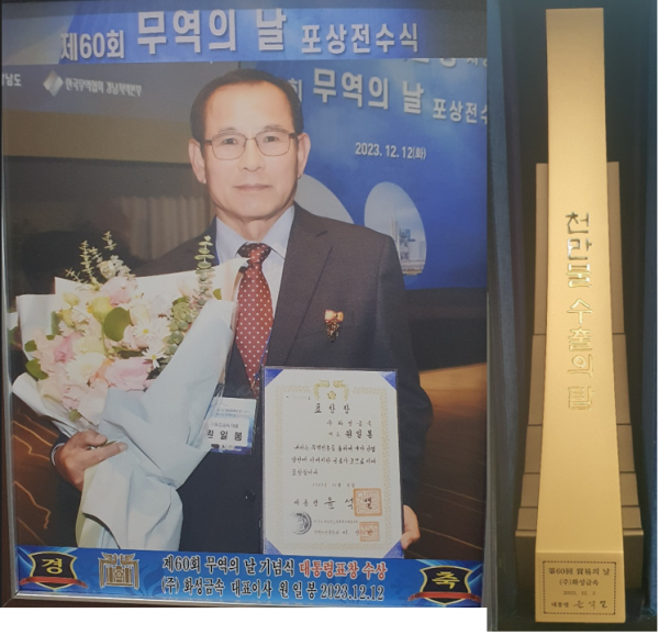 제60회 무역의 날(2023년12월05일)에 1000만불 수출의 탑 및 대통령상 수상